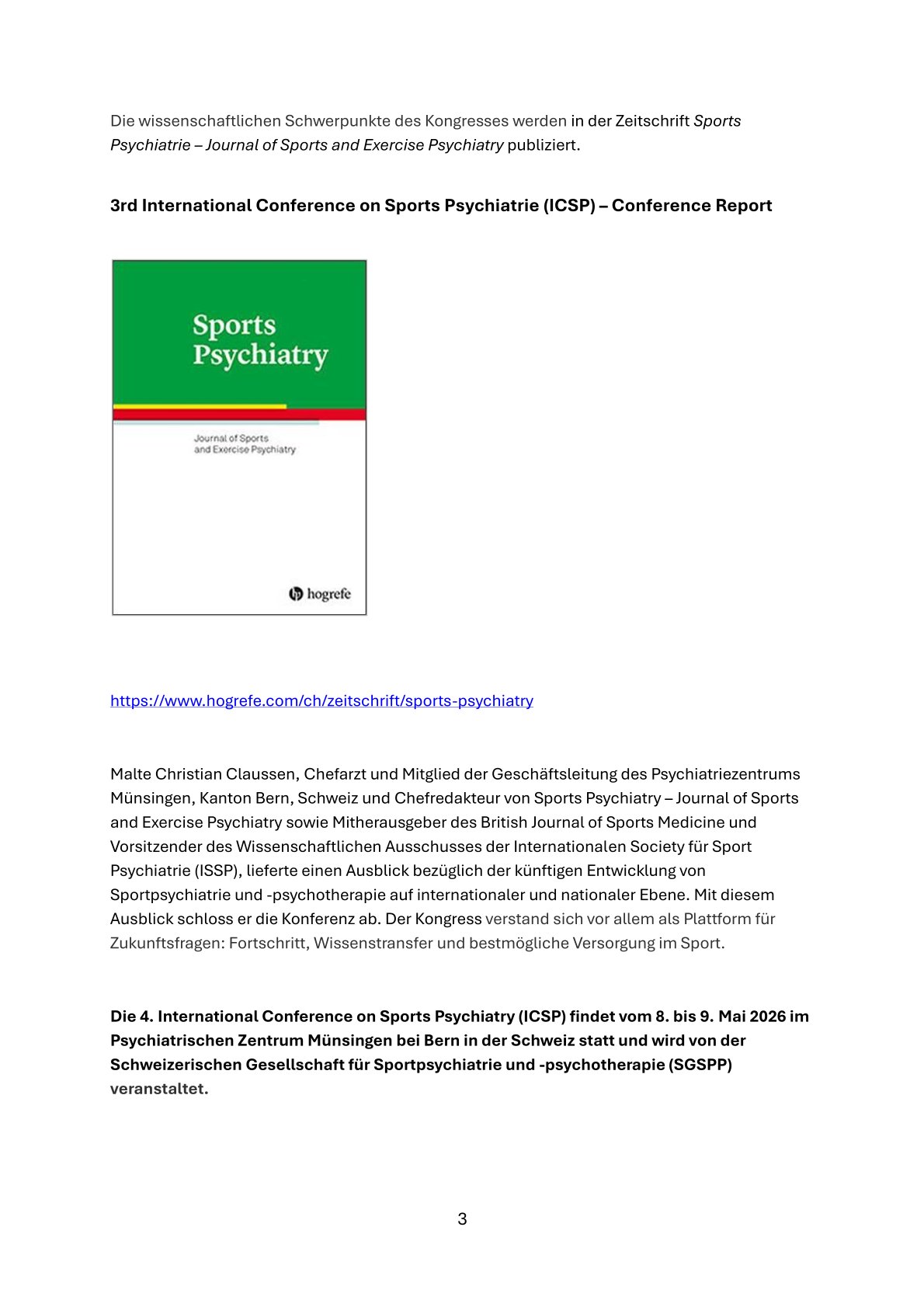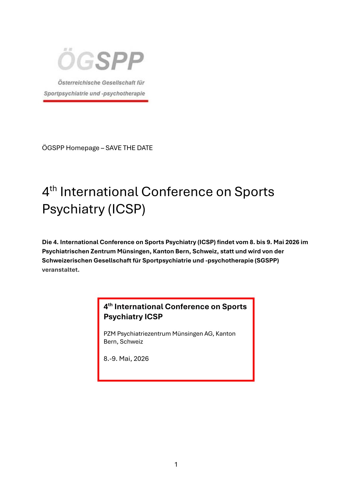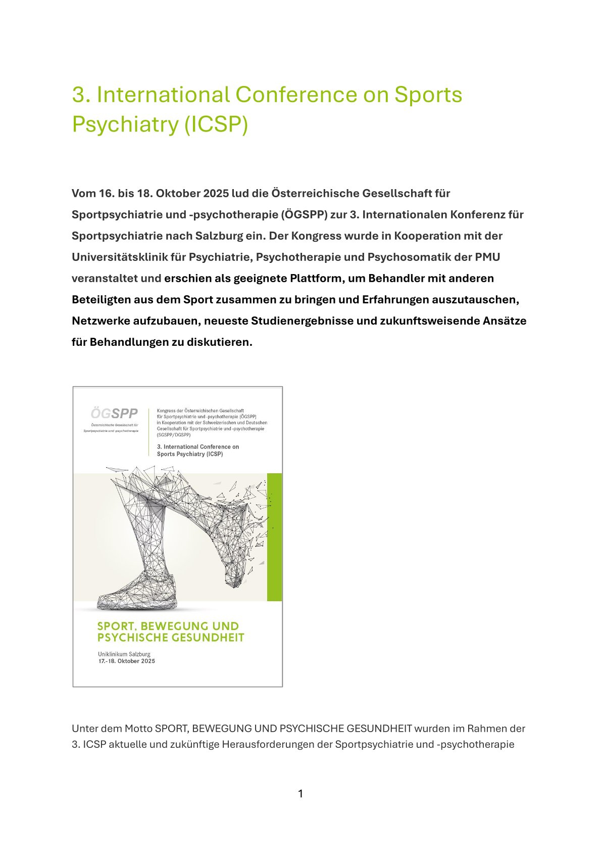 Bericht über die stattgefundene 3. International Conference on Sports Psychiatry (ICSP), Uniklinikum Salzburg, AUT